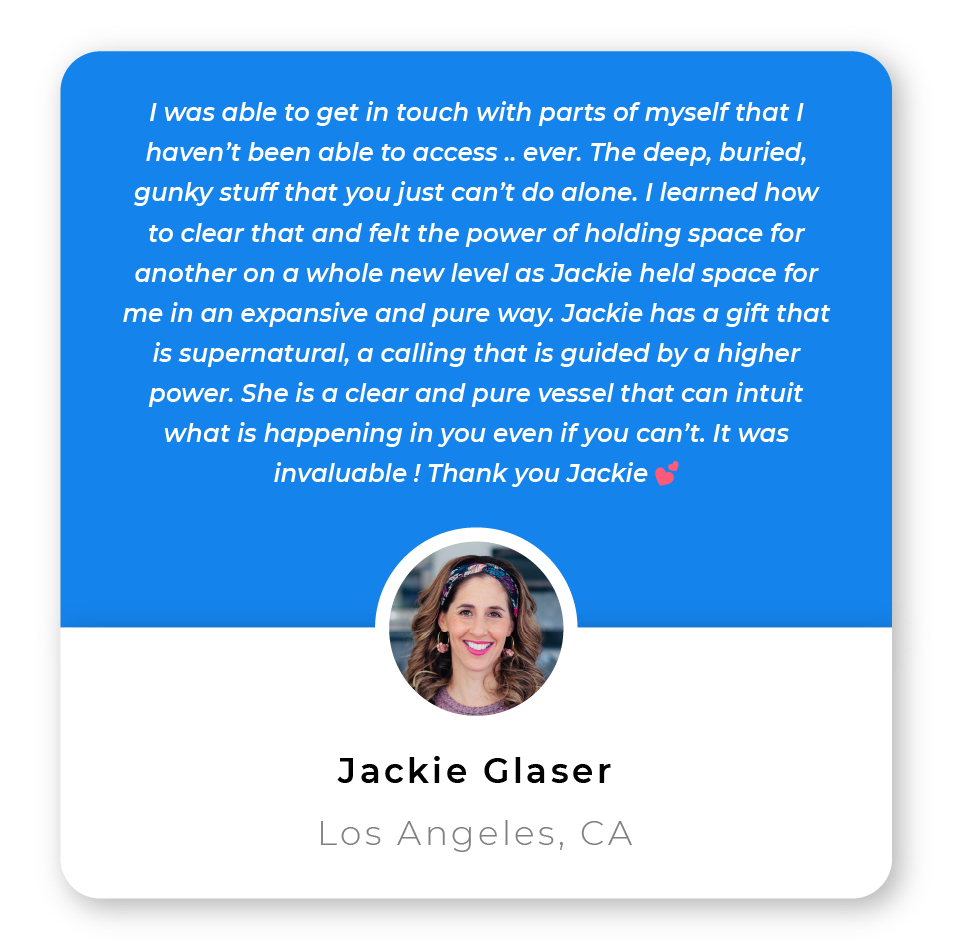 A high-touch 1:1 experience with Jackie for deep energetic breakthroughs and rapid transformation. Clear the patterns keeping you stuck, gain powerful clarity, and walk away with a customized plan to create aligned, effortless success in every area of your life.